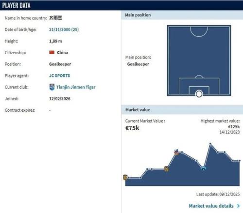 德国转会市场网最新信息显示,门将齐雨熙以自由身的方式加盟天津津门虎,双方的合同年限暂不清楚。