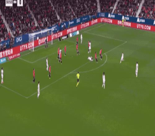 第55分钟,皇马大兵压境,居莱尔本打算和姆巴佩配合,皮球被拦截,居莱尔索性自己射门,皮球擦着横梁稍稍高出。