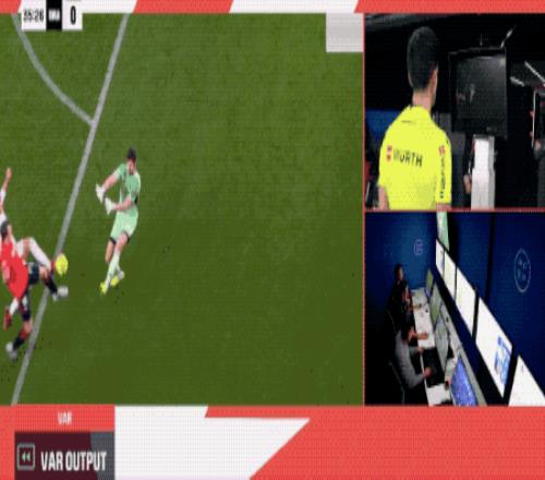 VAR立即介入,主队球迷爆发了漫天的嘘声,裁判回看过后取消黄牌,认定库尔图瓦犯规,给了奥萨苏纳点球。
