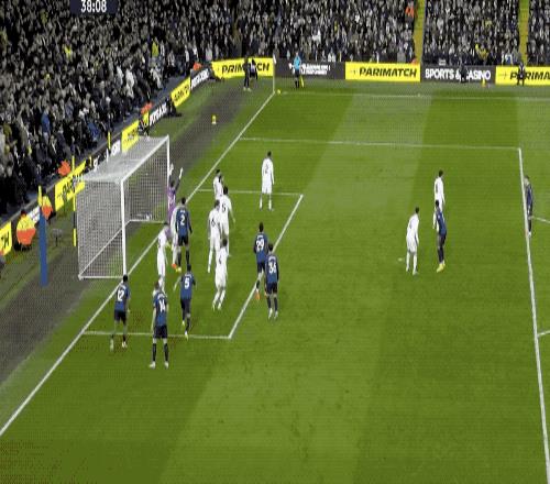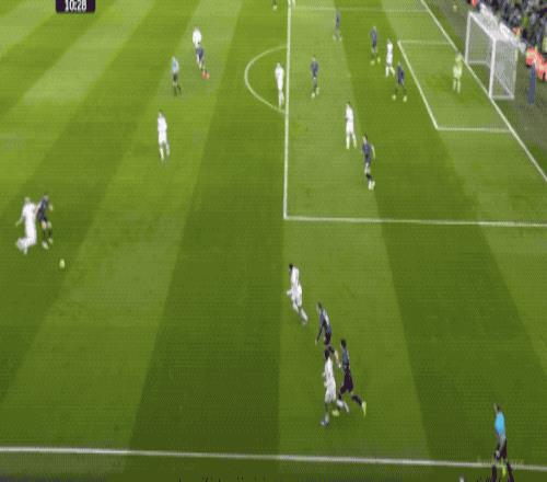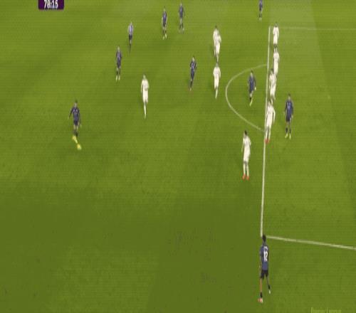 第79分钟,轮到廷贝尔在右路传中了,热苏斯近在咫尺的头球顶得有些正,达尔洛奋力将球托出横梁。