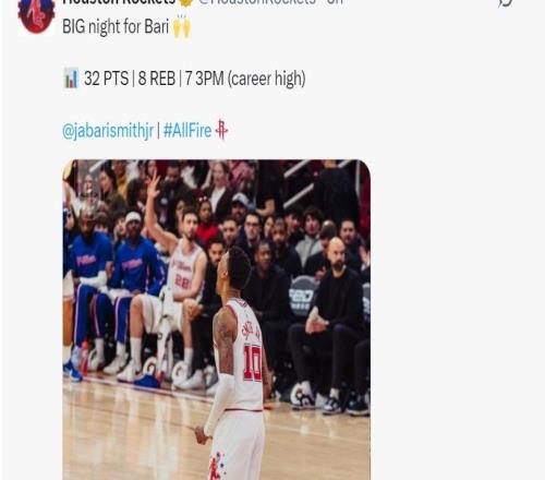 杜兰特18分6板8助攻火箭击败鹈鹕2连胜,史密斯32分申京21分8篮板 -