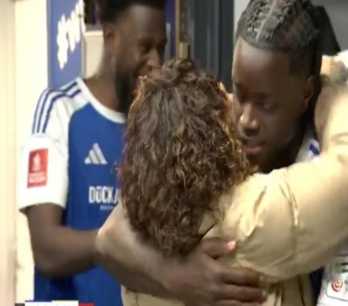 有情有义,爆冷晋级后麦克斯菲尔德全队与离世球员的父母一同庆祝 -
